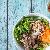 cienki makaron ryżowy, sałata, wołowina smażona z sosem rybny